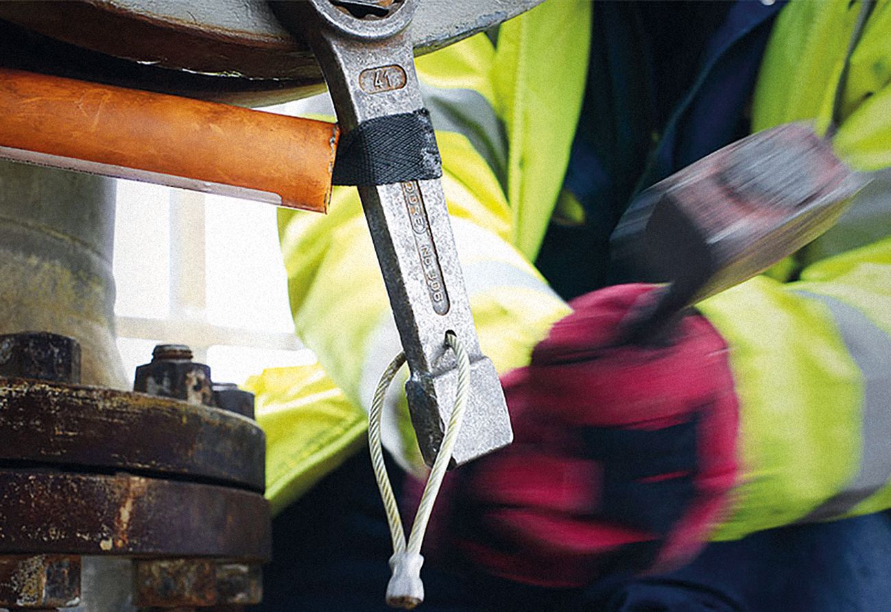 The product consists of a premium quality, highly robust plastic sheath, a rubber tensioner and a strap made of safety belt material (as used in motor vehicles). It is sturdy but light-weight, and extremely easy to handle. When used correctly, it is highly unlikely that the user could injure himself on the Fingersaver, that machinery or systems could be compromised in any way, or that its use could result in sparking in explosive environments.